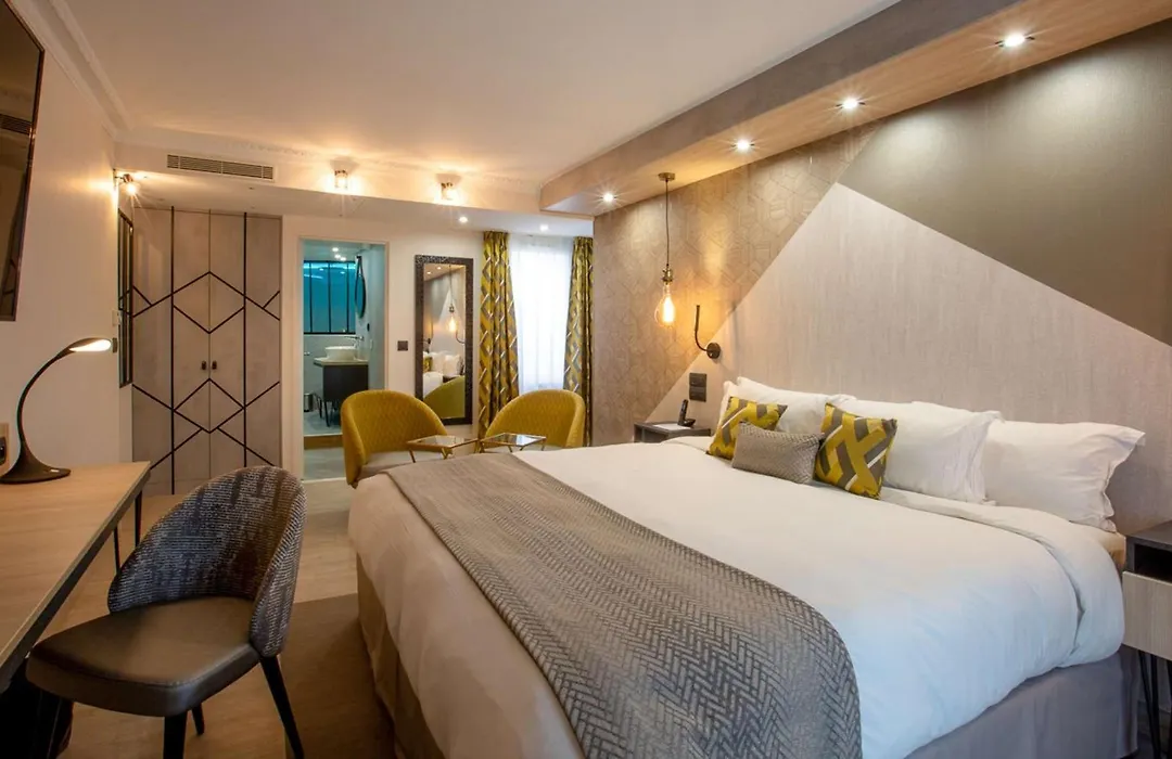The non-smoking rooms of the 4-star Best Western Plus Opera Batignolles hotel have ironing facilities and climate control along with a mini fridge bar, coffee and tea making facilities.
